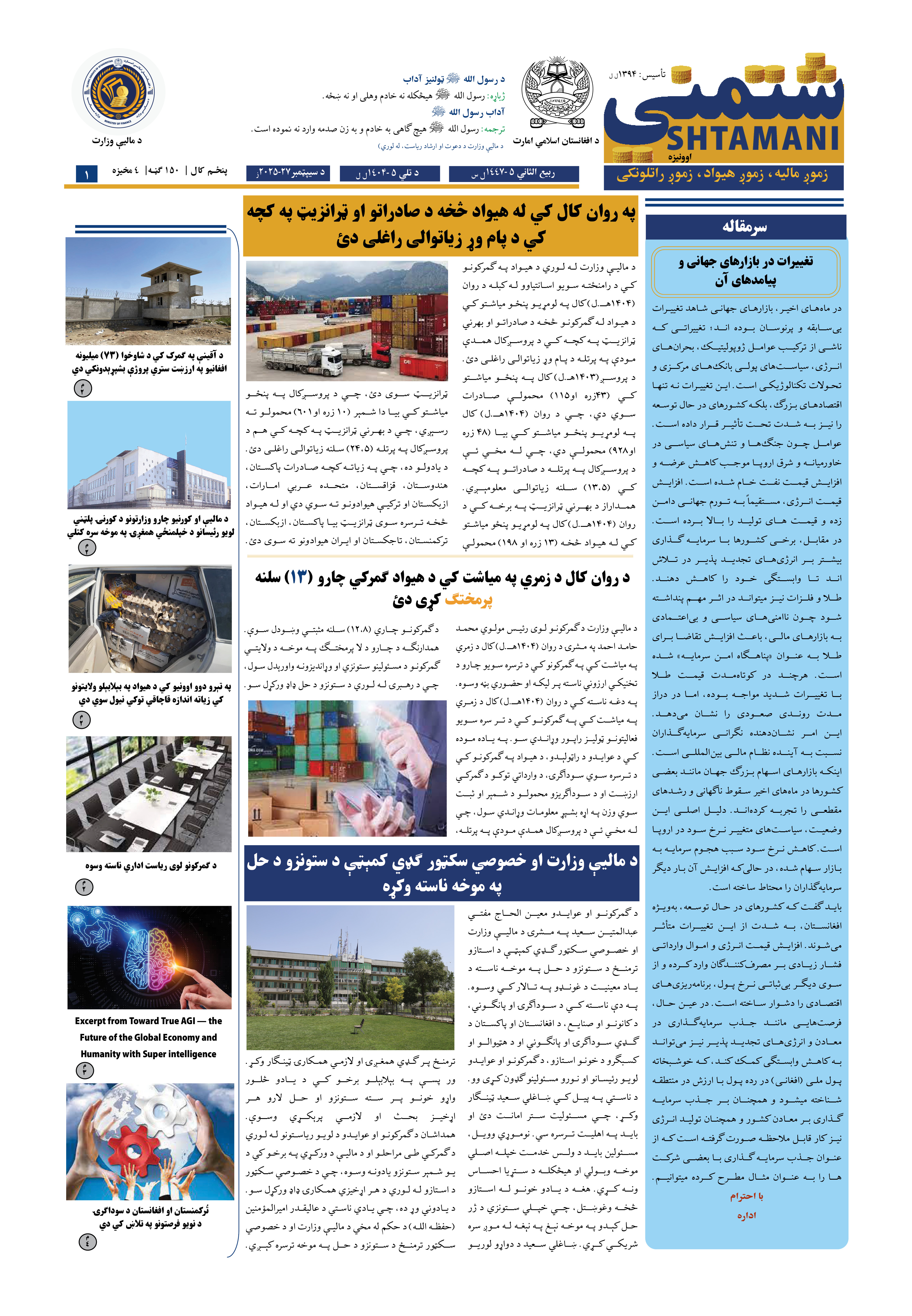 مالیي وزارت برېښنایي اونیزې 150 مه ګڼه