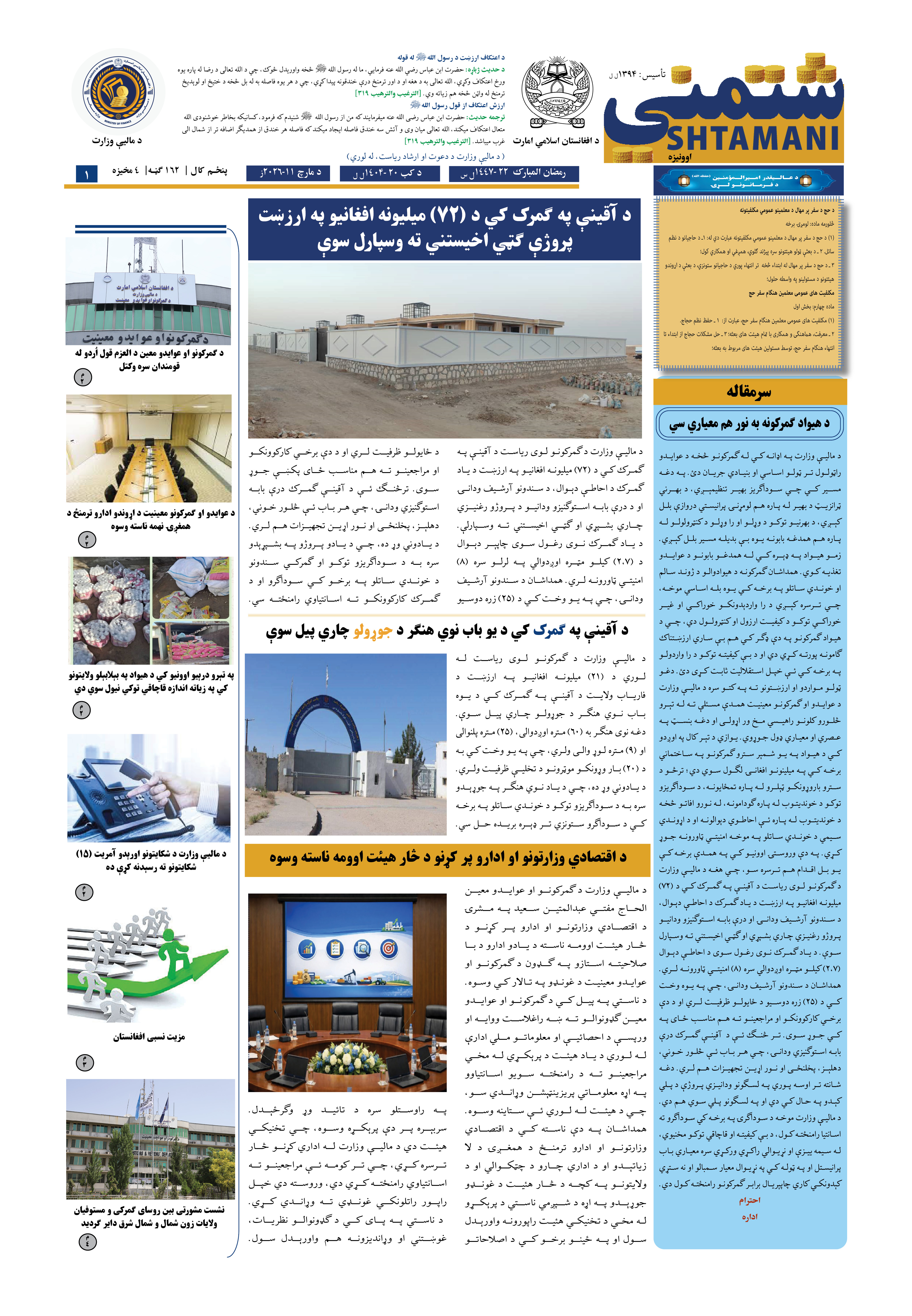 مالیي وزارت برېښنایي اونیزې 150 مه ګڼه