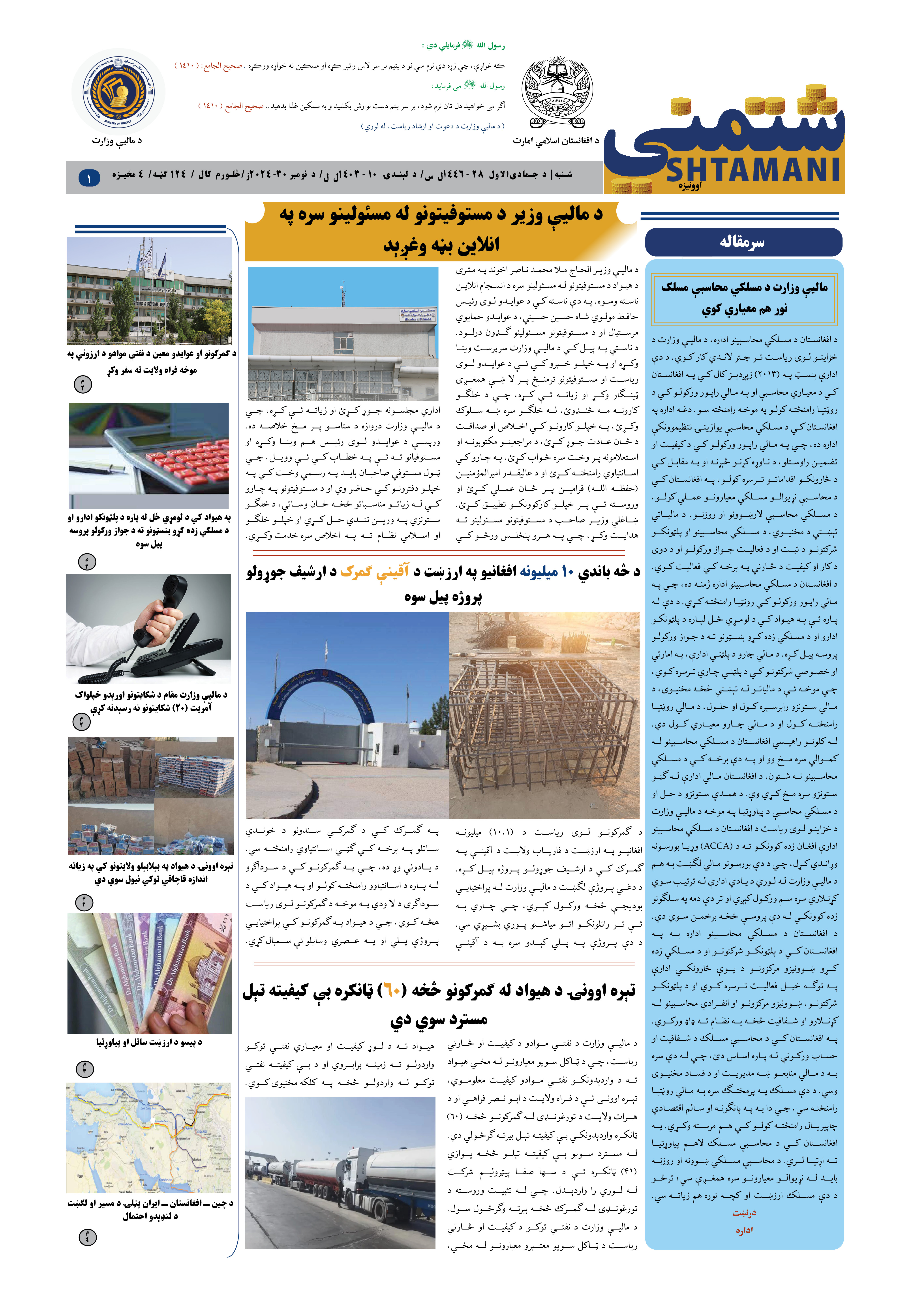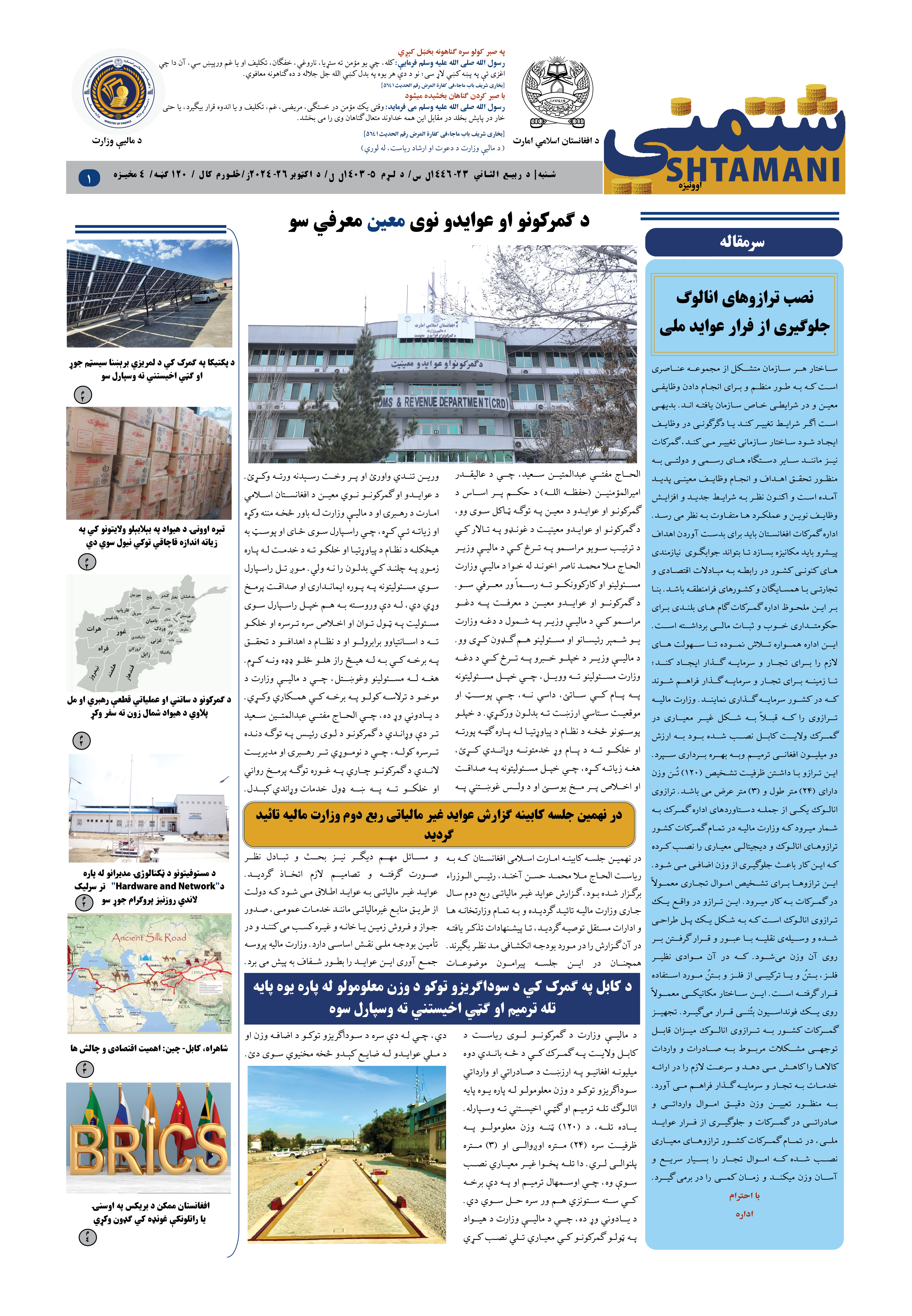 بر بنیاد حکم رهبری امارت اسلامی افغانستان تمام شرکت ها مکلف اند تا اموال تجارتی خویش در گمرکات توسط نماینده رسمی طی مراحل نمایند. همچنان بر اساس همین حکم یک نفر میتواند که نماینده سه . . .