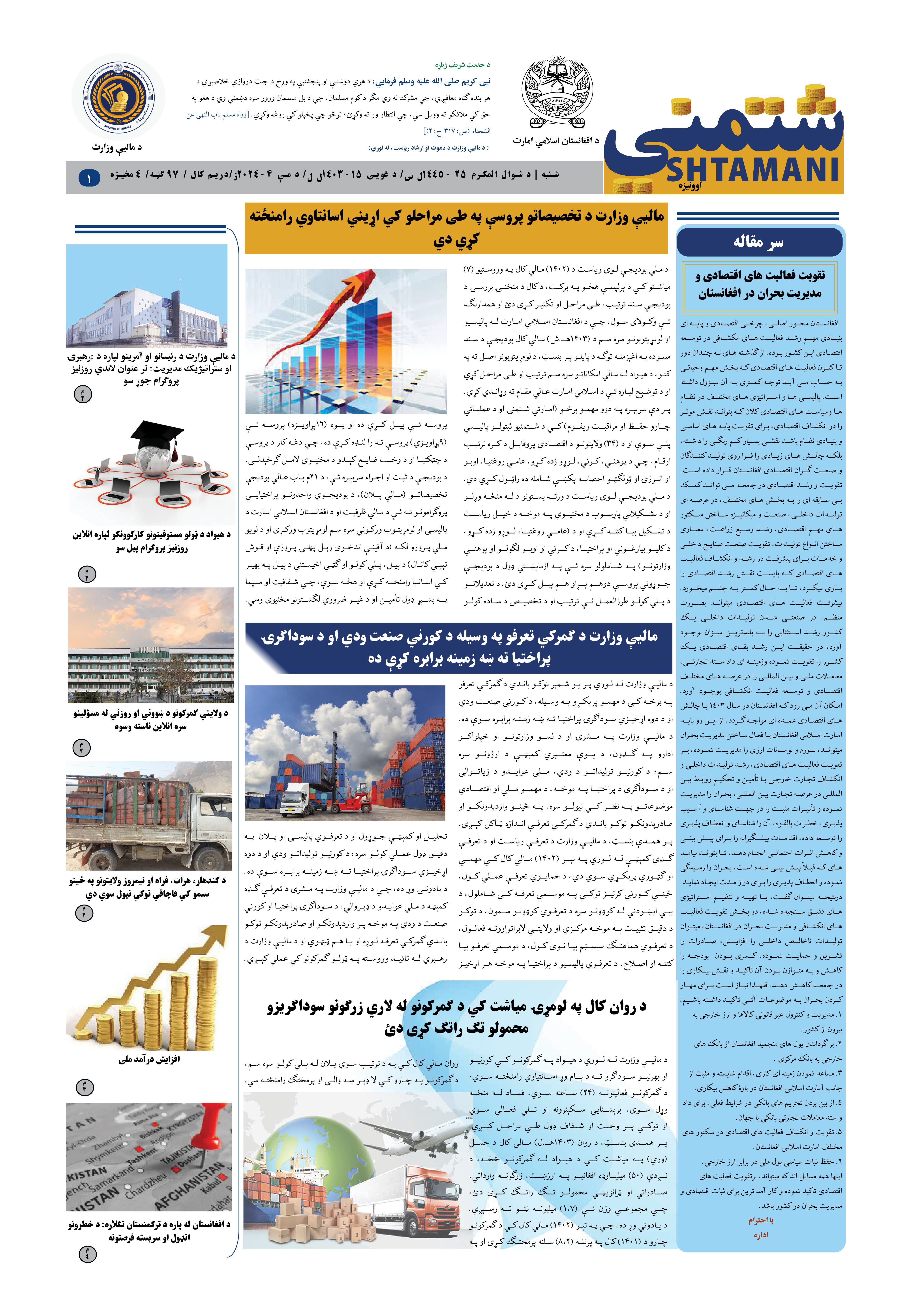 بر بنیاد حکم رهبری امارت اسلامی افغانستان تمام شرکت ها مکلف اند تا اموال تجارتی خویش در گمرکات توسط نماینده رسمی طی مراحل نمایند. همچنان بر اساس همین حکم یک نفر میتواند که نماینده سه . . .