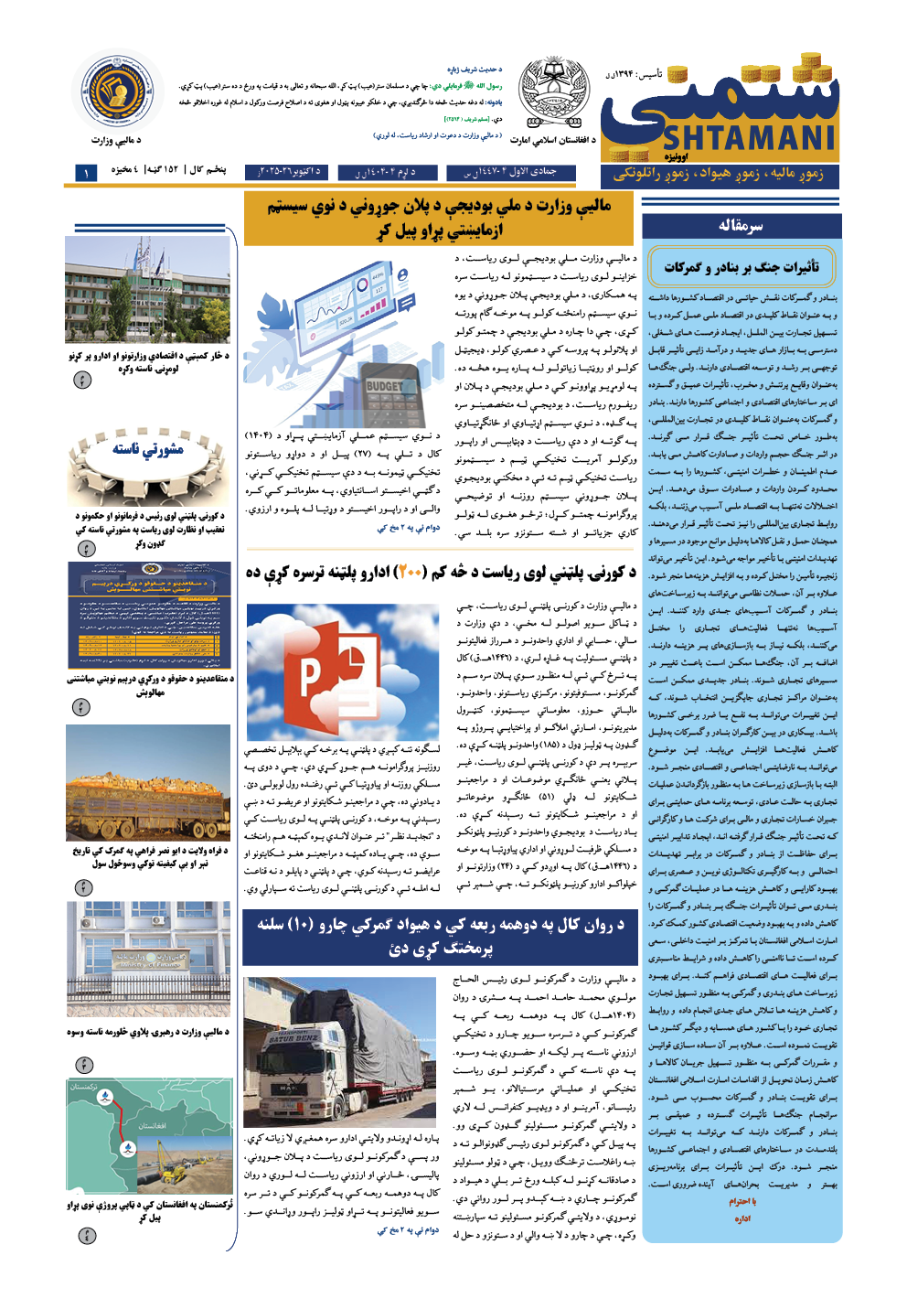 مالیي وزارت برېښنایي اونیزې 152 مه ګڼه