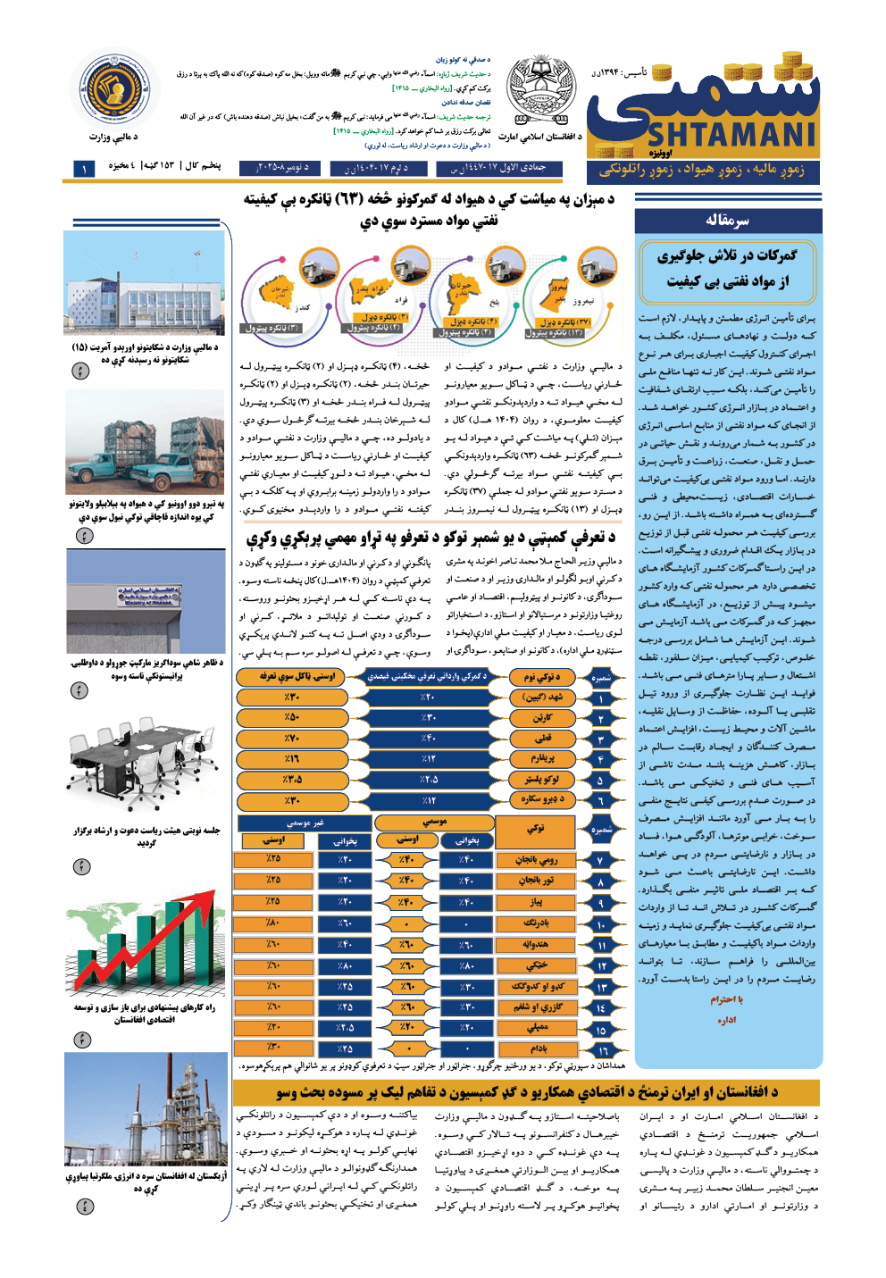 مالیي وزارت برېښنایي اونیزې 153 مه ګڼه