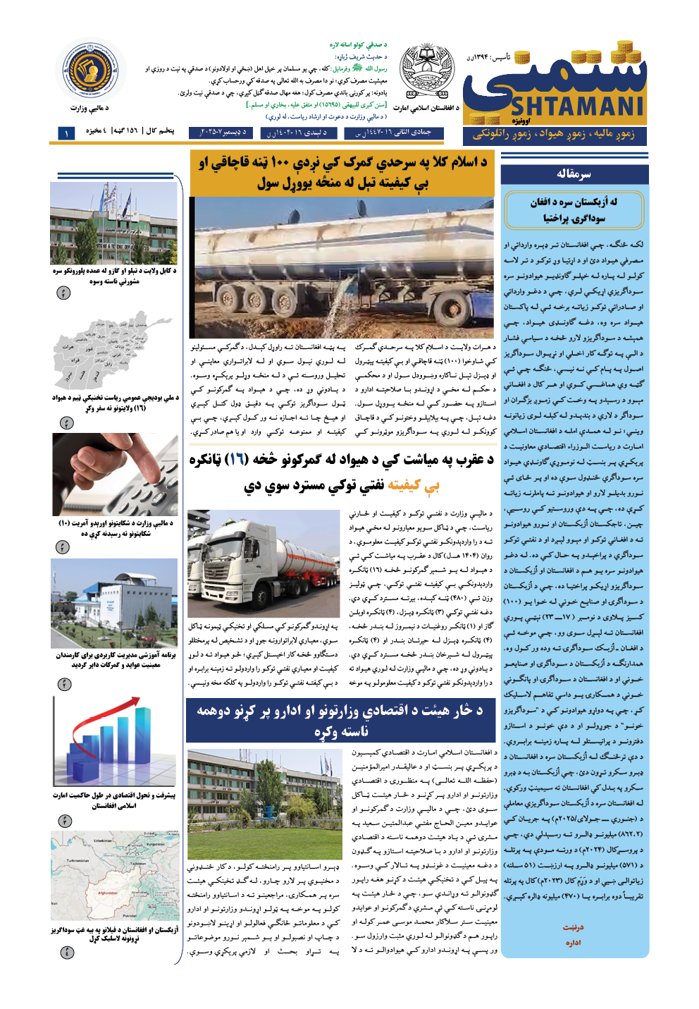 مالیي وزارت برېښنایي اونیزې 156 مه ګڼه