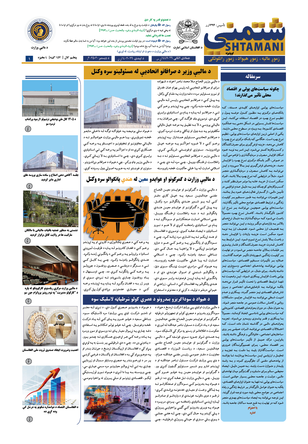 مالیي وزارت برېښنایي اونیزې 157 مه ګڼه
